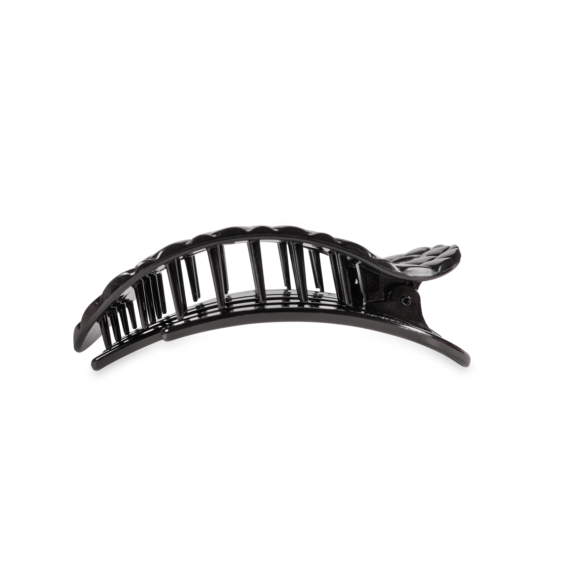 Lay flat and relax with the new TELETIES Jet Black Quilted Medium Flat Round Hair Clip in Black. This hair clip is designed to allow you to lay back flat, do yoga, or sit comfortably in a seat with a headrest, and it is made with the same material that is nearly unbreakable. Lay down flat with comfort Bendable teeth for a secure yet gentle hold Lightweight, durable, and suitable for all hair types Perfect for all-day wear—from sunup to sundown